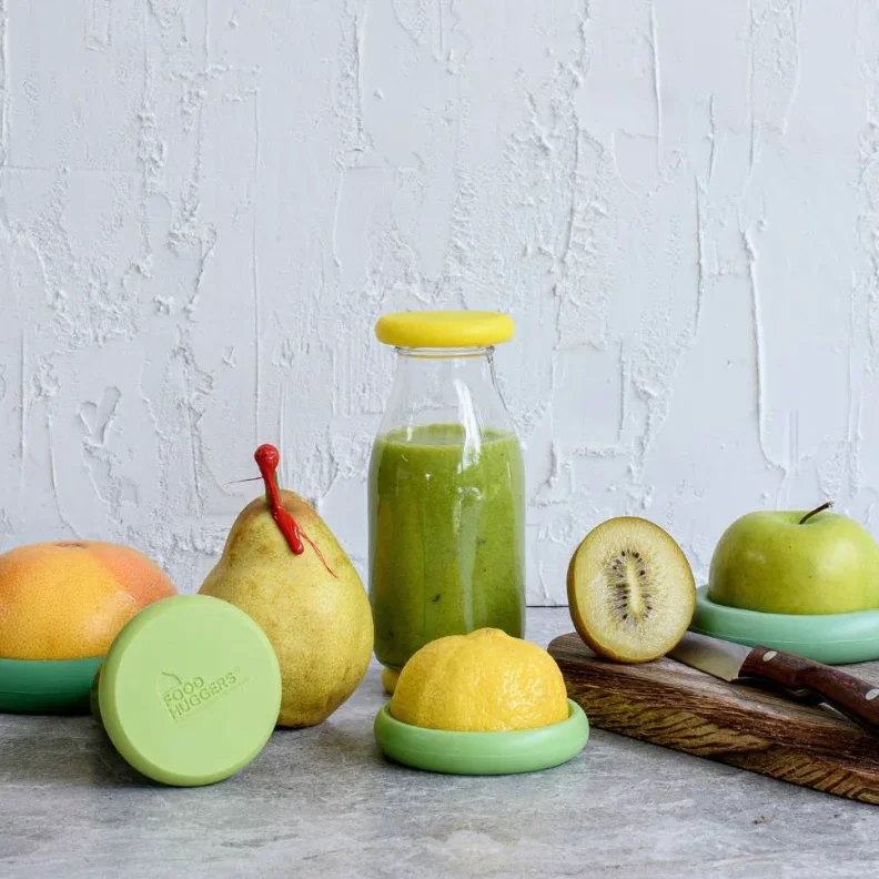 Food Huggers keep fruits, veggies, cans, and jars fresh longer. Nest compactly for storage and reduce plastic use with this versatile 5-piece set.
