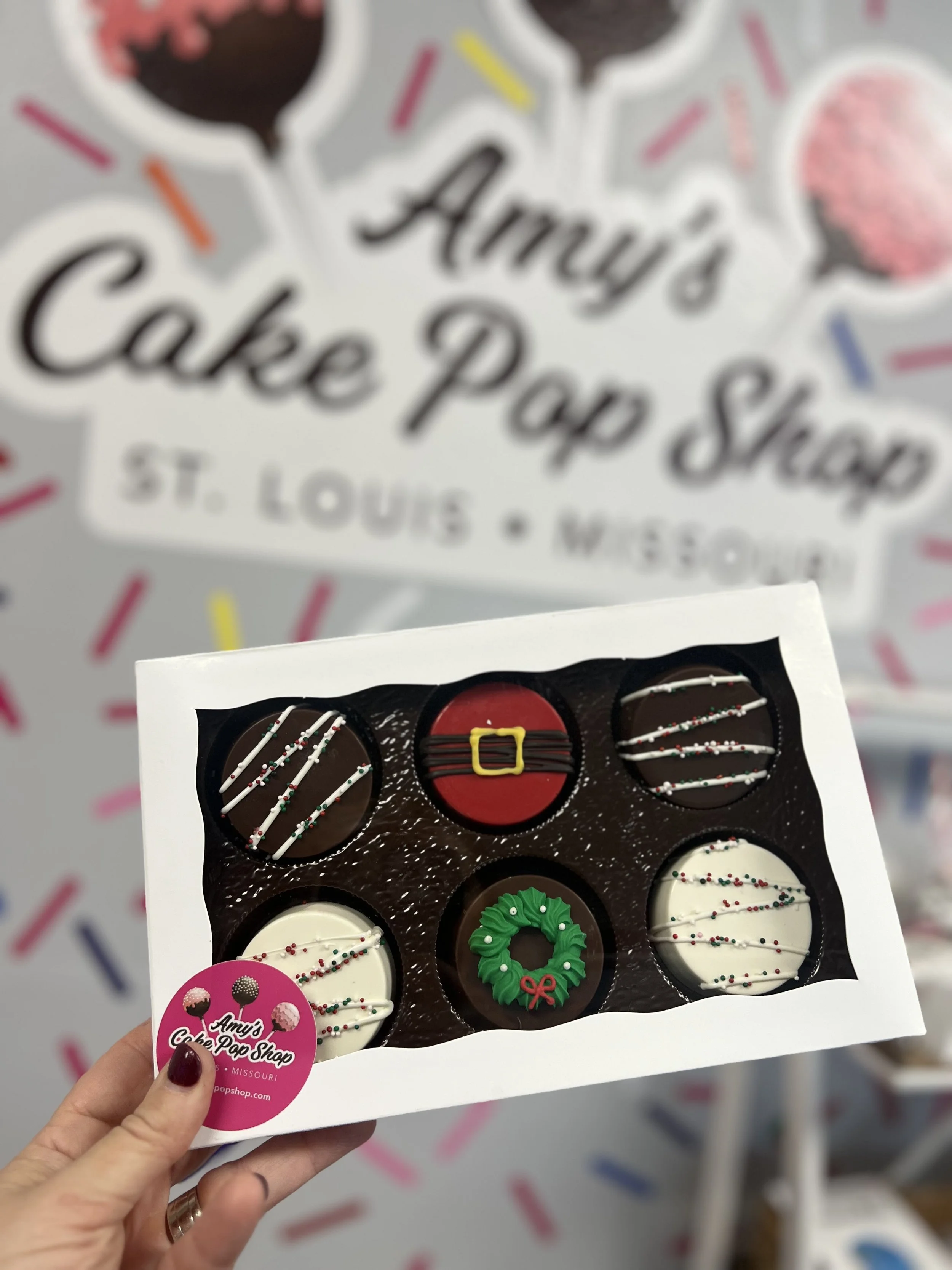 Holiday Chocolate Oreos include six festive chocolate-covered cookies in a window box, perfect for gifting or adding a sweet, playful touch to your table.